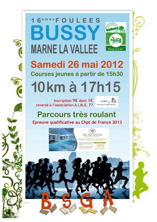 Cette épreuve phare du calendrier sportif buxangeorgien est chaque année l’occasion de démontrer la vitalité du sport dans notre ville, et en premier lieu celle de son club d’athlétisme, le BSGA. Réunissant plus de 600 participants dans les rues de Bussy, cette épreuve qualificative aux championnats de France 2013 promet cette année encore beaucoup de spectacle et d’émotions en tous genres.