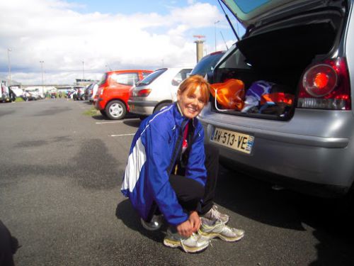 Nous arrivons avenue Foch à 6h3O et trouvons une place tout à côté de l'arrivée ce qui me rassure. Nous nous changeons dans la voiture et le moment de regagner les sas est arrivé.Thierry 3H00 et moi 3H45'. Nous nous souhaitons bonne course avant de se quitter.